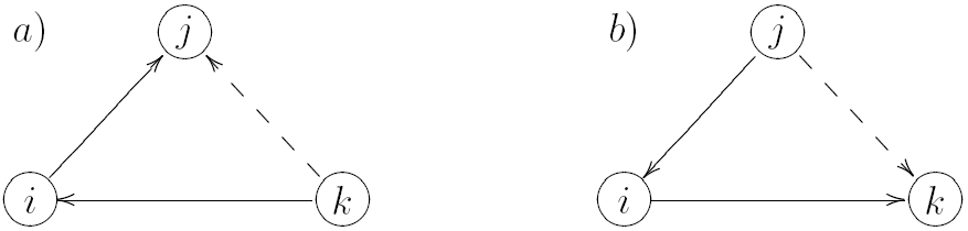 Wasserman and Faust (1994) termed triplets that do not fulfill this condition as vacuous. These triplets are not part of the numerator nor of the denominator of the fraction. More specifically, when we are dealing with directed data there can be four basic configurations of a triplet around an individual node i: ,