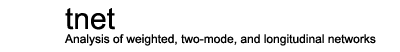 thank you very much for all the good work you are doing with tnet! Since the data I use for my PhD is either 2-mode or (when projected to one of the modes) weighted, you can imagine I make grateful use of the package.