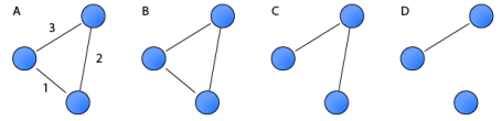 However, even though ties in many empirical networks have naturally a strength associated with them, most network measures can only be applied to binary networks, i.e. networks where ties are either present or absent (Scott, 2000; Wasserman and Faust, 1994). Therefore, researchers must convert weighted networks into binary ones. A common way of doing this is to dichotomise a weighted network into a series of binary ones by using a set of cutoffs. A tie is set to present if its weight is higher than the cut-off, and removed otherwise. As the figure below shows, a weighted network (a) can create a range of binary networks (b-d) depending on the cut-off. This figure illustrate how the subjectivity of the researcher’s choice of the cut-off value will produce biases that may invalidate subsequent analysis.